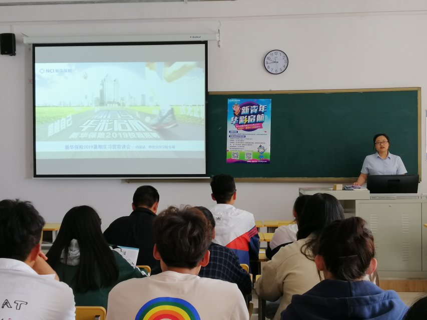 6月5日下午,新华人寿保险股份有限公司呼伦贝尔中心支公司专场校园招聘宣讲会在崇文楼305教室举行,参加本次活动的有新华保险公司人力资源部经理卢冬梅及3044永利集团各年级员工代表。