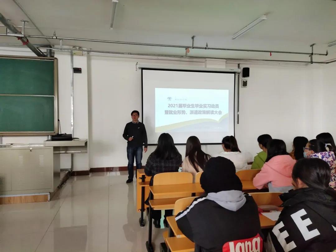 为了使2021届毕业生更好的了解就业形势,扎实推进2021届毕业生实习工作顺利开展,3044永利集团于11月4日上午8:30在崇文楼B401举办2021届毕业生毕业实习动员暨就业形势、派遣政策解读大会。出席本次动员大会的有3044永利集团副经理王英利、团学办公室主任张迪及2017级全体毕业生。