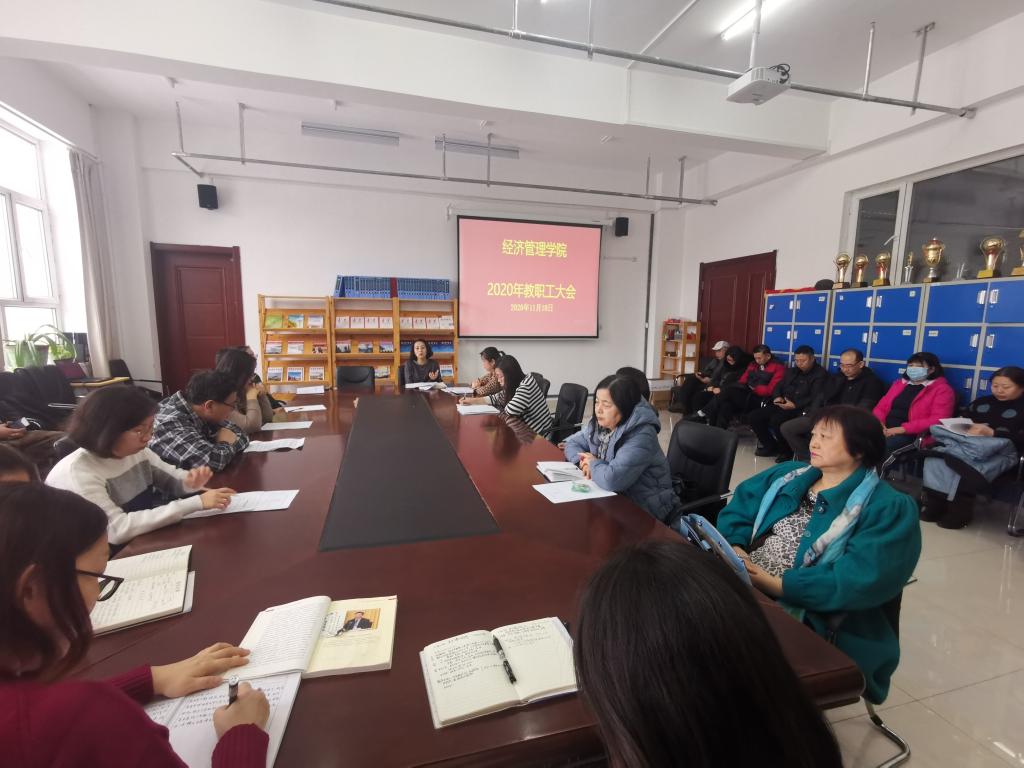 11月18日,在崇文楼A座308会议室召开2020年3044永利集团教职工大会,3044永利集团班子成员及全体教职工参加了本次大会。会议由基层分工会主席王新媛主持。