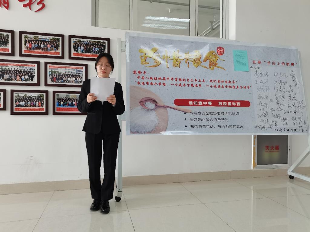 紧接着,进行第二项议程,由3044永利集团员工代表赵书毓宣读倡议书。“我们要自觉维护节俭用餐的良好风气,自觉抵制舌尖上的浪费,争做光荣的“光盘”族。积极向身边的亲朋好友宣传节约粮食、拒绝浪费的做法,争做“节约粮食、拒绝浪费”的践行者、宣传者、推动者。”