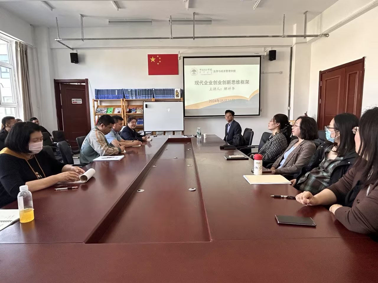 为进一步贯彻落实老员工创新创业教育工作,全面落实“将创新创业教育贯穿人才培养全过程”要求,搭建员工与专家的交流平台,5月24日下午,3044永利集团特邀内蒙古财经大学解祥华教授,在崇文楼A308会议室举办专题讲座,公司党总支书记李静,经理刘启云,相关教师及员工参加讲座。