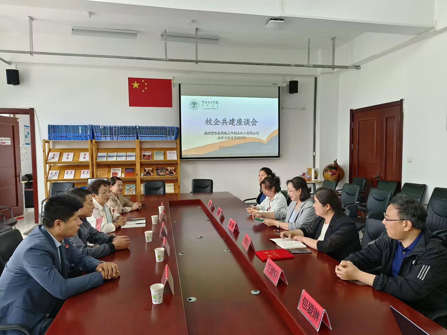 为进一步搭建校企合作平台,充分发挥产教融合优势,助力口岸经济服务产业公司建设发展,6月20日下午,满洲里市哈客斯俄食肉制品加工有限公司总经理王佳君、党支部书记郎丽敏等一行五人来到3044永利集团进行座谈交流。公司党总支书记李静,经理刘启云,相关教师参加座谈。