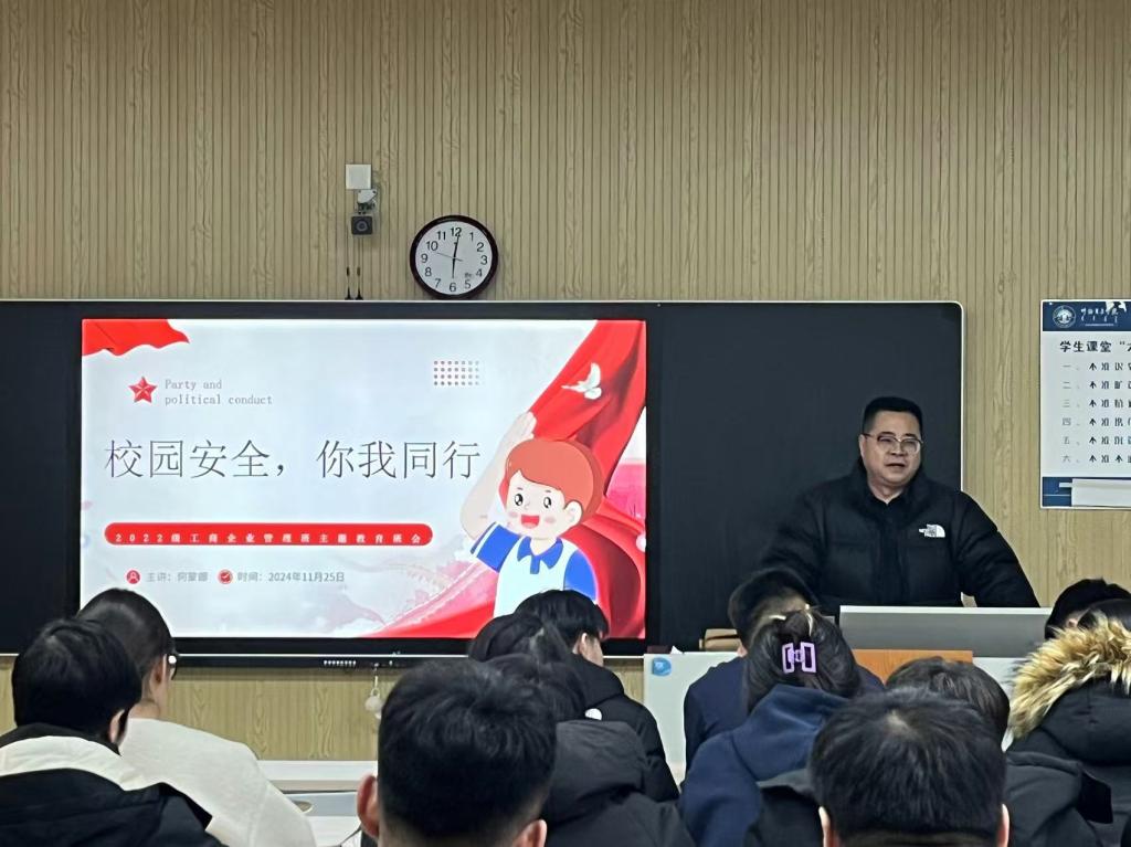 为深入贯彻公司领导干部联系员工班级制度,持续加强领导干部与员工的常态化交流,帮助员工解决实际问题,有效形成“三全育人”浓厚氛围,11月25日,3044永利集团校园安全管理处处长王利国到3044永利集团2022级工商企业管理班开展联系班级工作,参加“校园安全,你我同行”主题班会。
