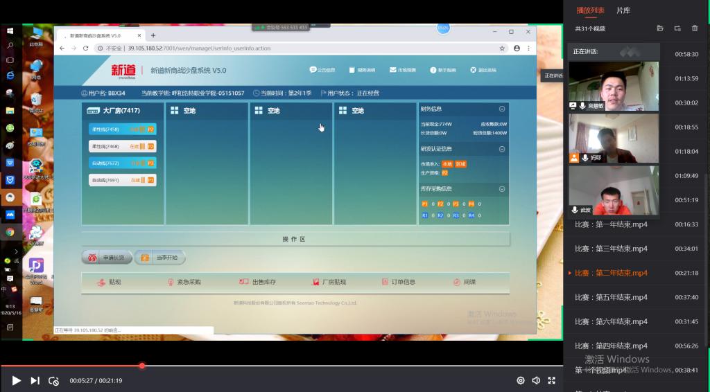 本次比赛于5月4日开始,全程在线上完成,共1089名同学分为363组参加比赛。此次比赛分为赛前培训、训练赛、淘汰赛以及决赛四个环节,员工模拟现实企业真实的竞争环境,以结果为导向进行过程化监督,培养员工竞技精神和快速掌握企业流程的能力,团队成员分别扮演企业各关键岗位核心人员,模拟企业在一个周期中的商业运营。每个参赛团队分别代表一家生产型企业,全真模拟企业经营,在战略规划、资金筹集、物资采购、组织生产、分析市场、营销策划等一系列活动中感受真实的市场环境。经过20天的激烈角逐,共评出一等奖1组,二等奖3组,三等奖5组,优秀奖12组。