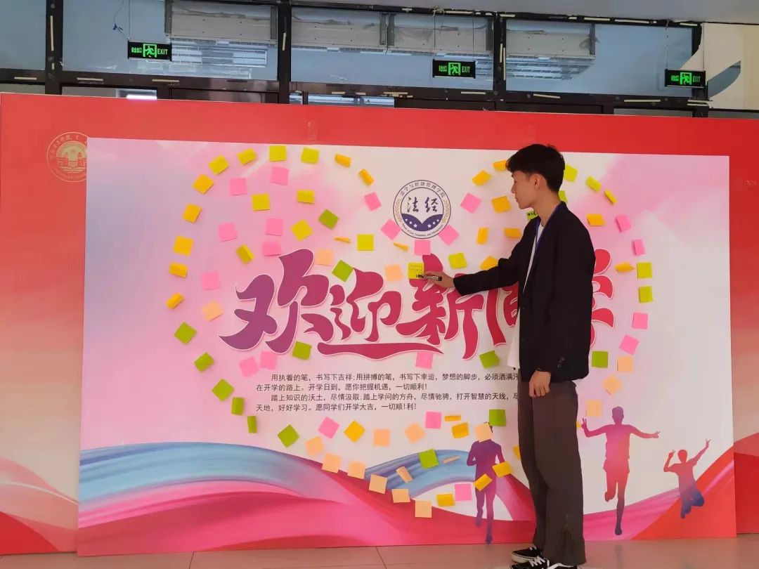 新学期、新气象,欢迎五湖四海的莘莘学子来到3044永利集团这个大家庭,3044永利集团位于崇文楼A座,为了迎接23级新生的到来公司设置了专门的打卡地!畅所欲言,法经学子快在打卡地写下自己对3044永利集团的美好愿景吧!