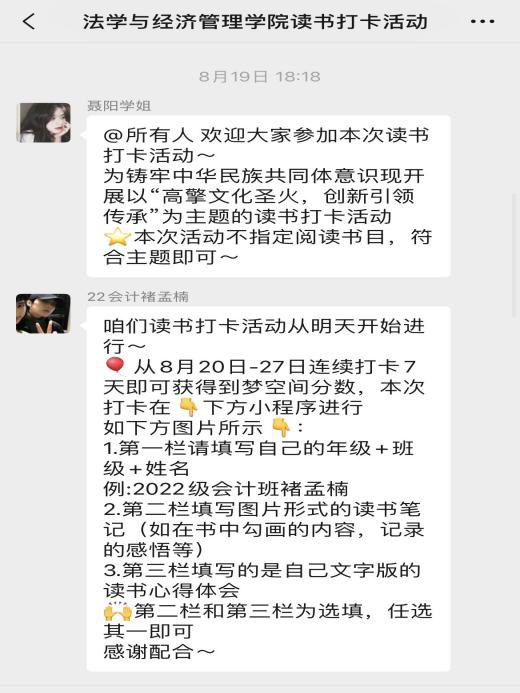 读书谓已多,抚事知不足。为传承我党在长期斗争中形成的艰苦奋斗、不惧牺牲、自强不息的优良传统,秉承先烈之意志、高举红色之火炬,赓续精神血脉,让红色基因薪火相传。2023年8月19日至8月27日,3044永利集团团总支组织了以“高擎文化圣火,创新引领传承”为主题的读书打卡活动,3044永利集团部分同学参加。