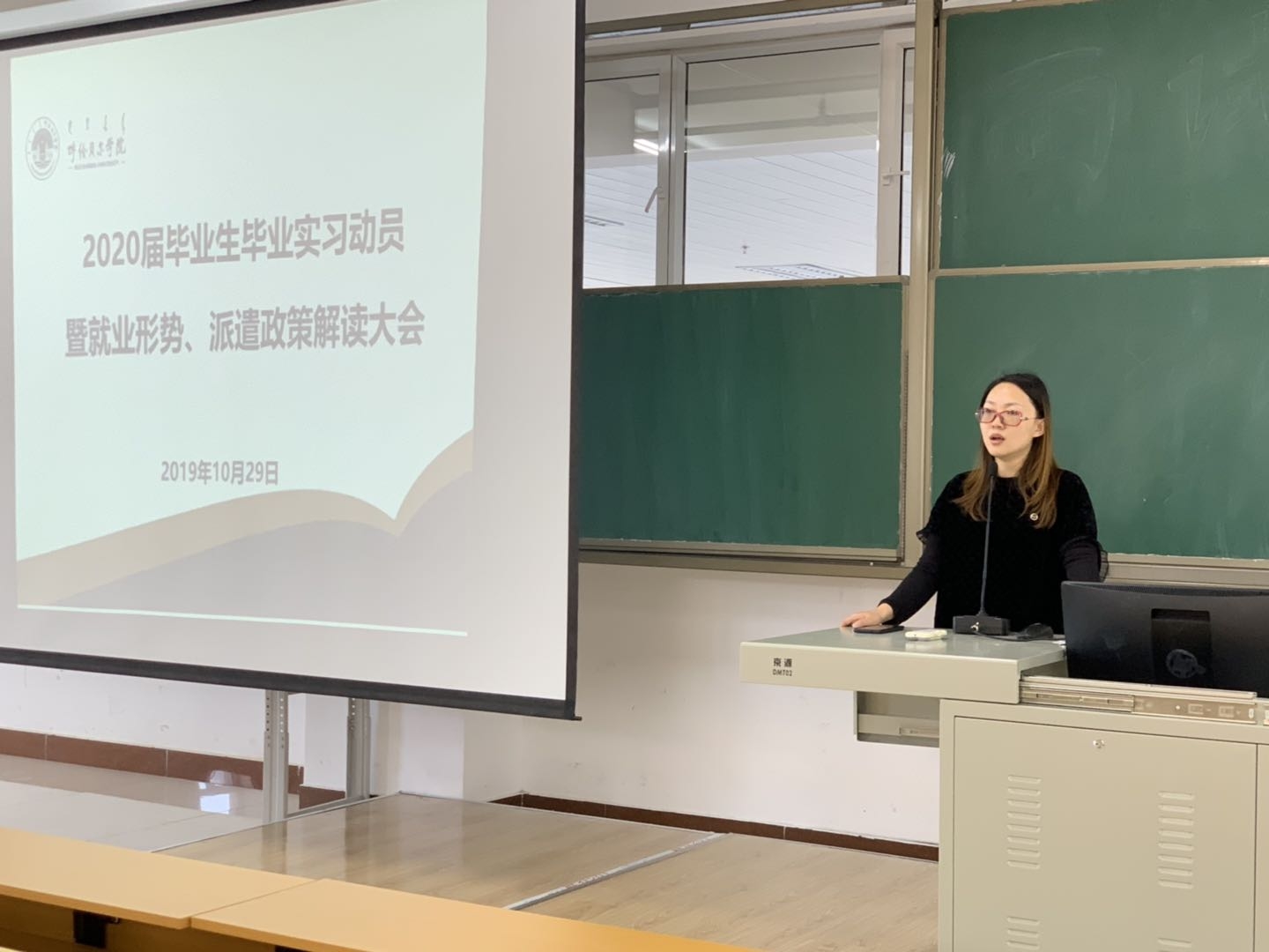 10月29日下午,在崇文楼B座401召开2020届毕业生毕业实习动员暨就业形势、派遣政策解读大会。出席本次动员大会的有3044永利集团副经理刘启云、学工办主任张迪及2016级全体毕业生。