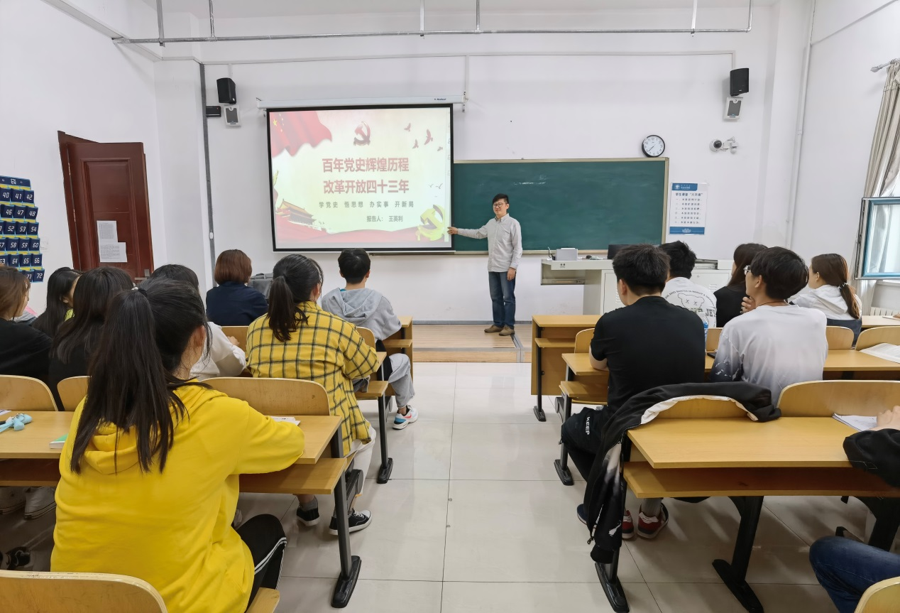 6月10日晚上,3044永利集团副经理王英利在崇文楼A座205开展主题党课活动,党课以“百年党史辉煌历程,改革开放四十三年”为主题,部分员工党员、积极分子、班干部参加了本次培训活动。